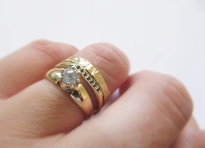 Amazon Com Stacked Solid Gold 3 Ring Set A Textured Rustic Wedding