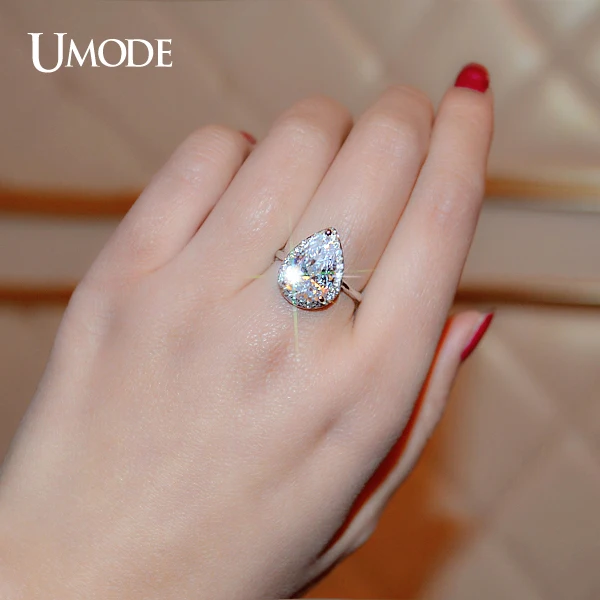 Us 4 21 30 Off Umode Brand Wedding Rings For Women Water Drop White Gold 4 Carat Pear Cut Cubic Zirconia Micro Cz Halo Engagement Rings Ur0145b In