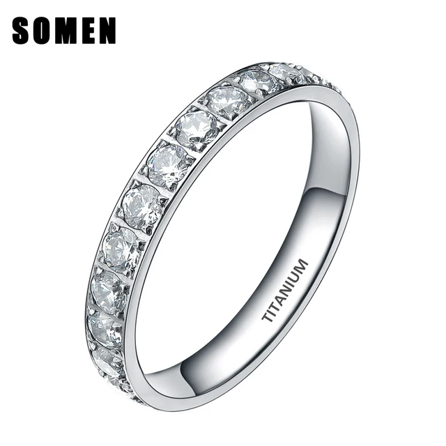 Us 8 63 45 Off 3mm Titanium Luxury Cubic Zirconia Women Wedding Ring Ladies Eternity Engagement Rings Promise Jewelry Drop Shipping Bague Femme In