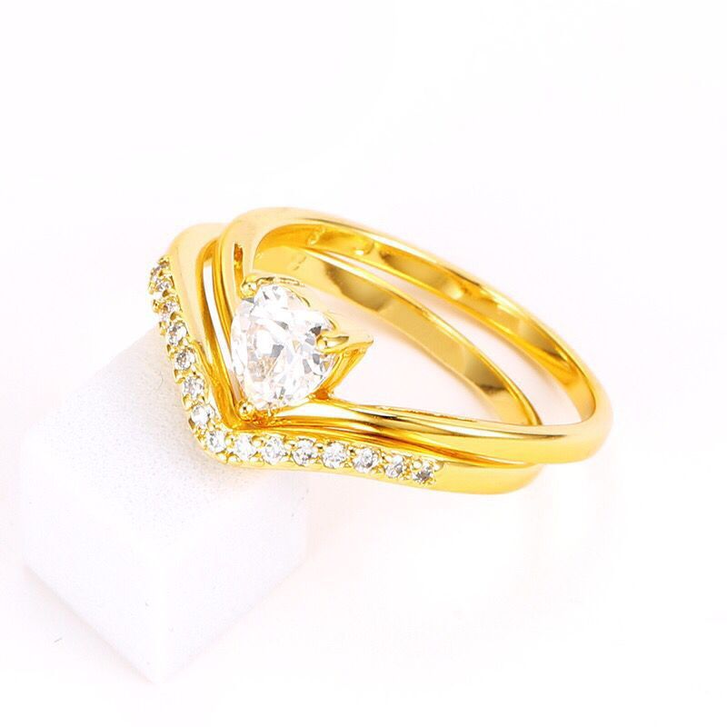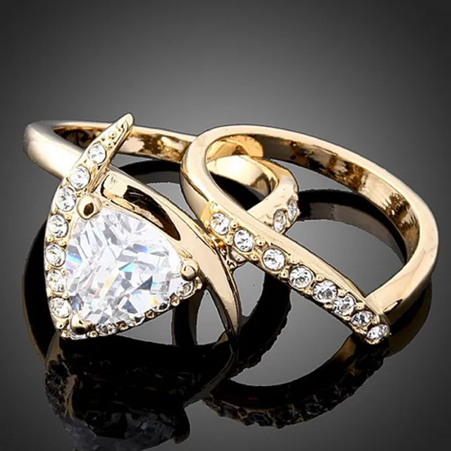 Us 4 99 Unique Alloy Cubic Zirconia With Rhinestones Jewelry Triangle Rings Wedding Ring Set 24k Gold Color J00088 In Rings From Jewelry