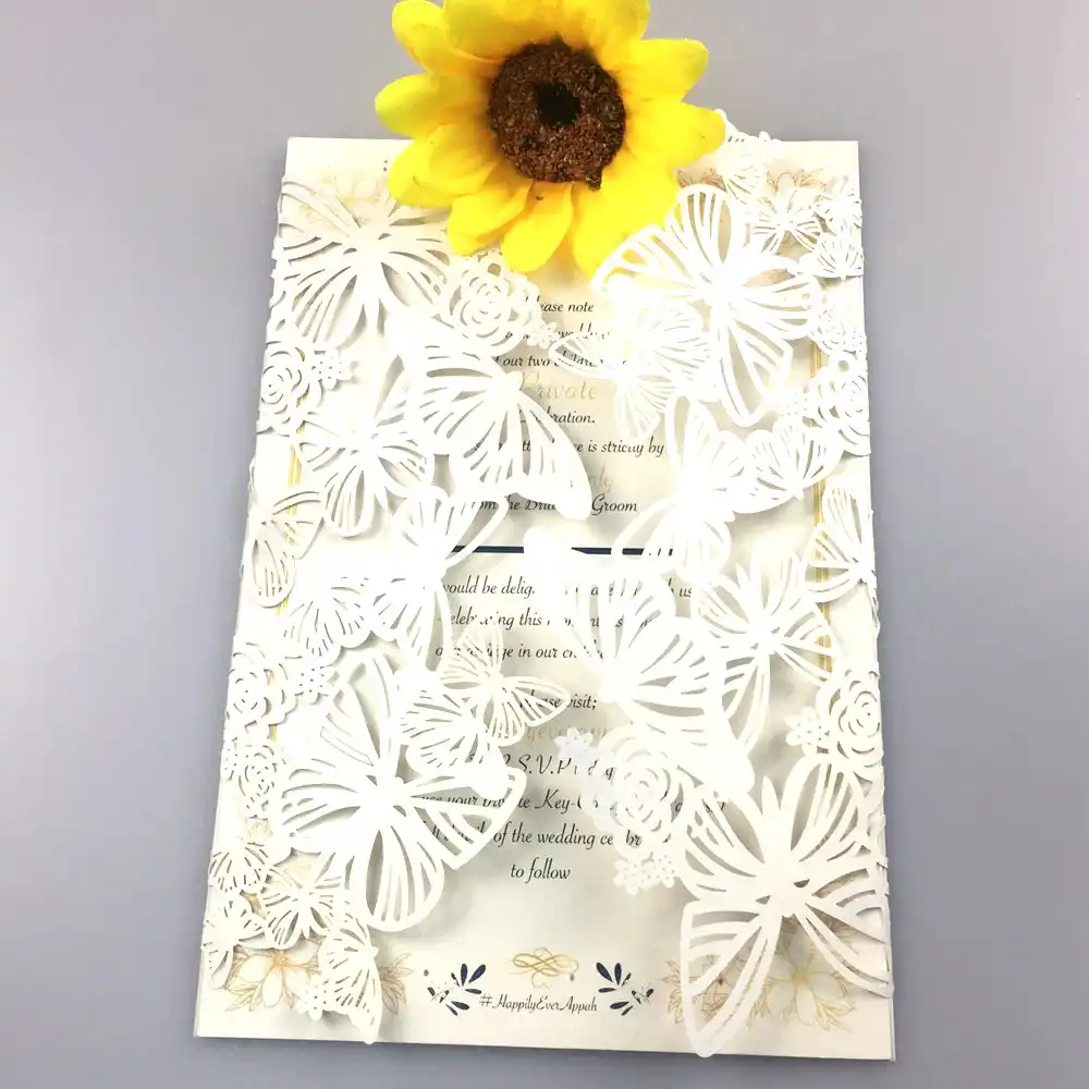 Free Drop Shipping 1pcs White Butterfly Flower Business Party Birthday Laser Cut Invite Wedding Invitation Card Red Tiffany