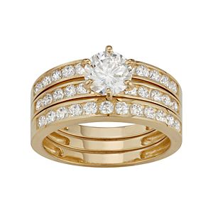 3 Piece 5 62 Tcw Round Cubic Zirconia Bridal Ring Set In 18k Gold Over Sterling Silver