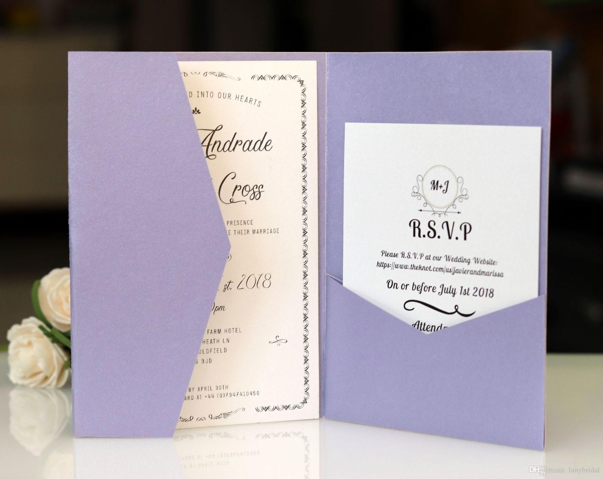 Light Purple Laser Cut Invitations Cards With Rsvp Cards White Pearl Paper Invite Card Stock For Birthday Party Supply Free Shipping