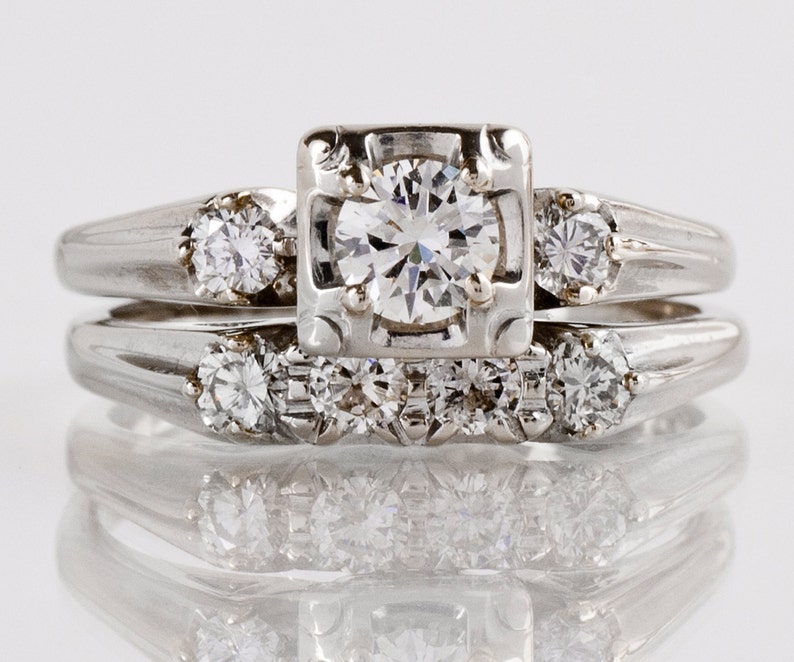 Vintage Engagement Ring Vintage 1950 S 14k White Gold Diamond Wedding Ring Set