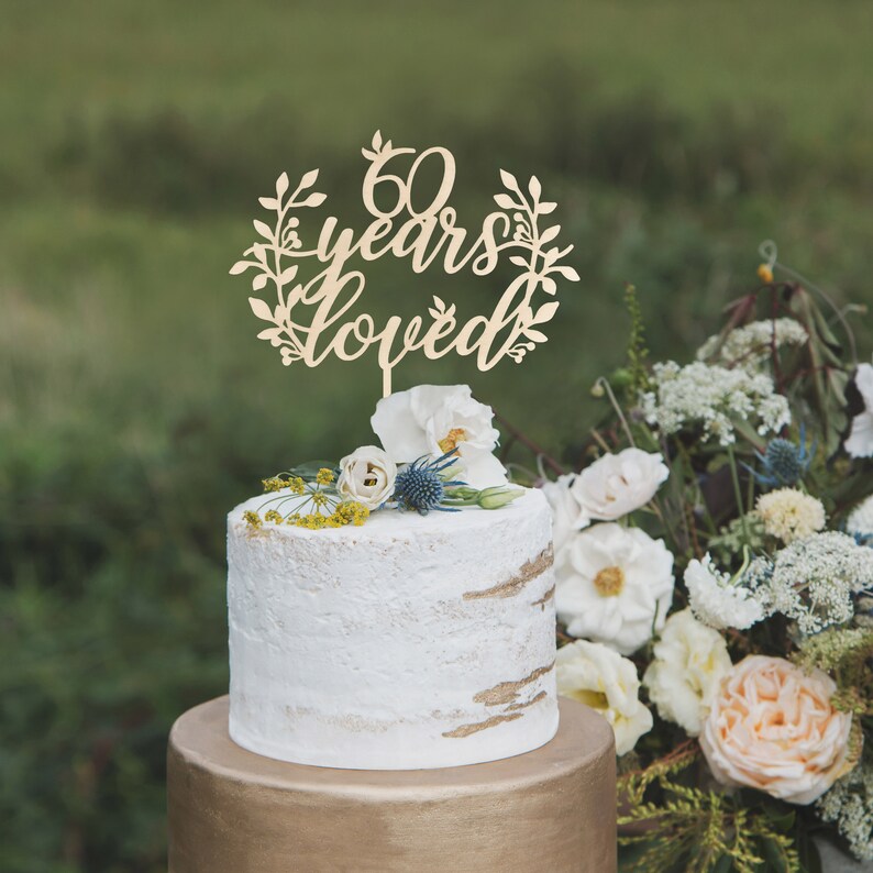60th Anniversary Cake Topper 60 Years Loved Wedding Anniversary Cake Topper Custom Cake Topper Rustic Cake Topper