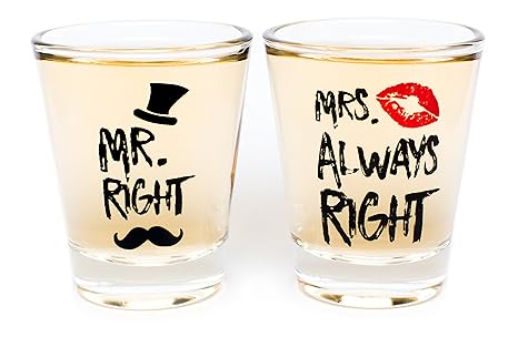 Funny Wedding Gifts Mr Right And Mrs Always Right Novelty Shot Glasses Engagement Gift Or Anniversary Gift For Newlyweds And Couples