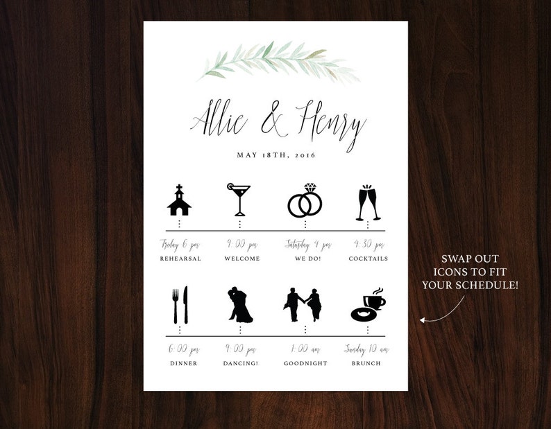 Custom Wedding Schedule Diy Print Your Own Perfect For Guests Bridal