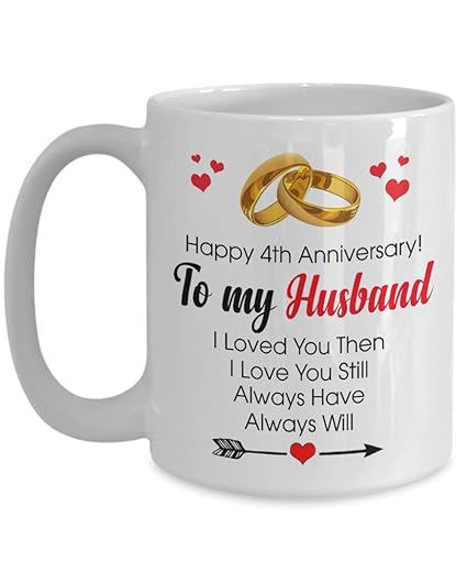 Amazon Com Happy 4th Anniversary Mug Husband 4 Year Wedding Gift