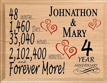 Broad Bay 4th Personalized 4 Year Anniversary Wedding Gift For Wife Husband Couple Him Her