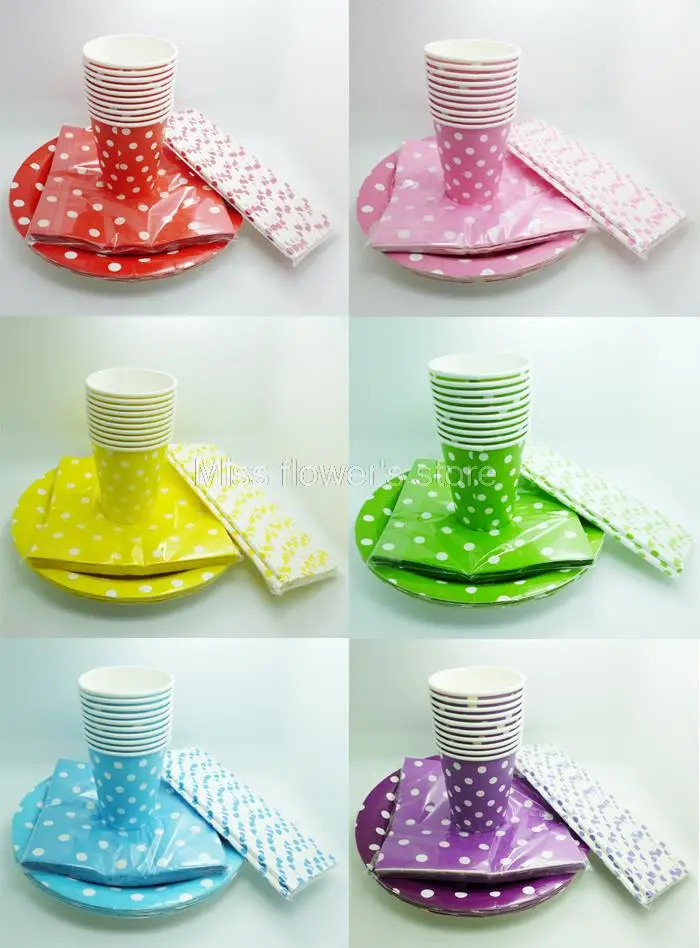 Us 13 29 5 Off Colored Polka Dots Series Set Tableware Paper Plates Cups Napkins Drinking Straws Birthday Wedding Party Catering Decor In