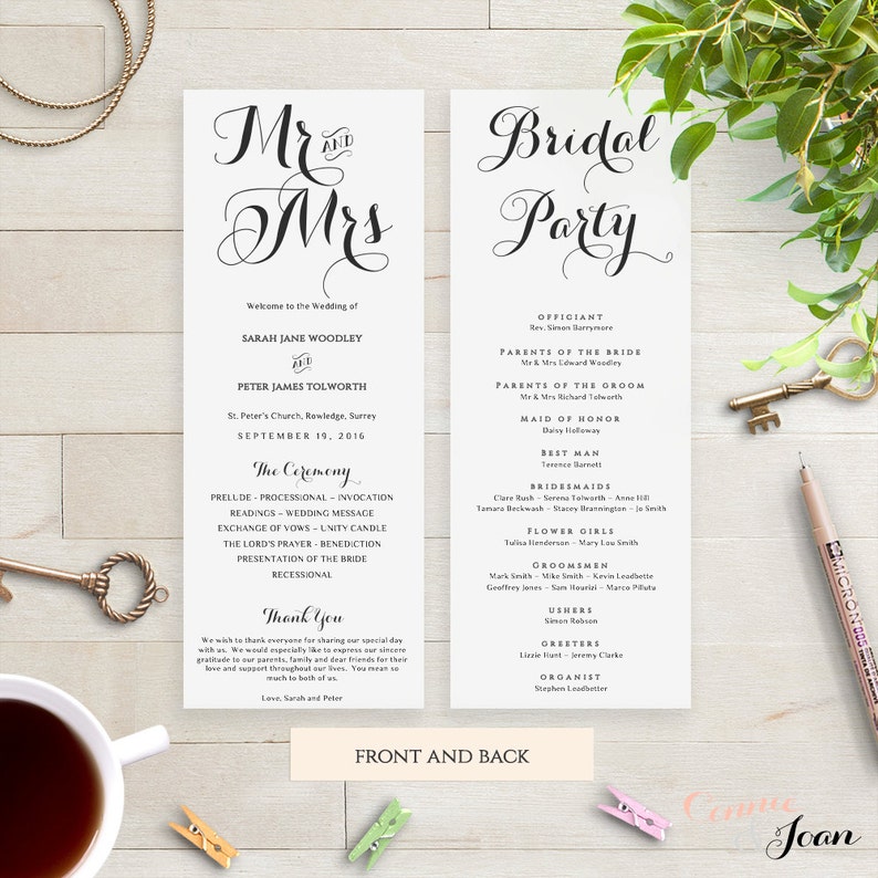 Printable Order Of Service Wedding Program Byron Edit Print Trim Diy Editable Printable Template Edit In Word Or Pages