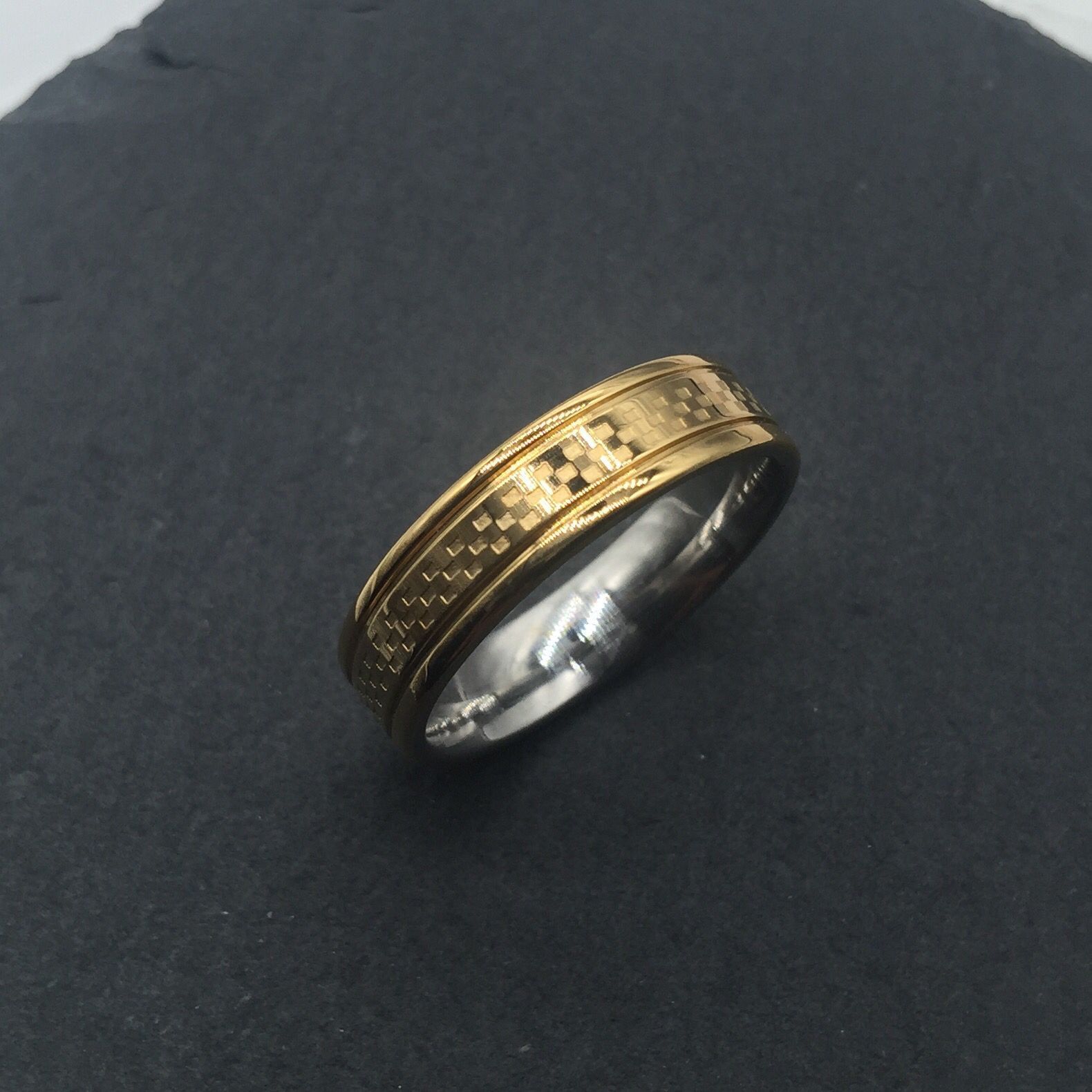 6mm Brushed Gold Wedding Band Milgrain Polished Edges