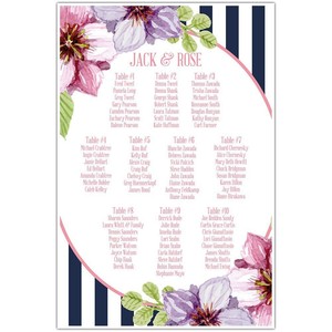 Details About Watercolor Flowers Navy Striped Seating Chart Sign Table Arrangements