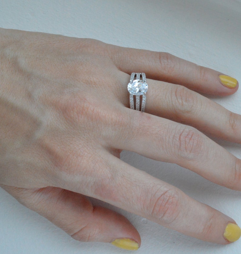 Oval Shaped Multirow Engagement Ring Cubic Zirconia Engagement Ring Micro Pave Wedding Band Art Deco Engagement Oval Solitaire Ring
