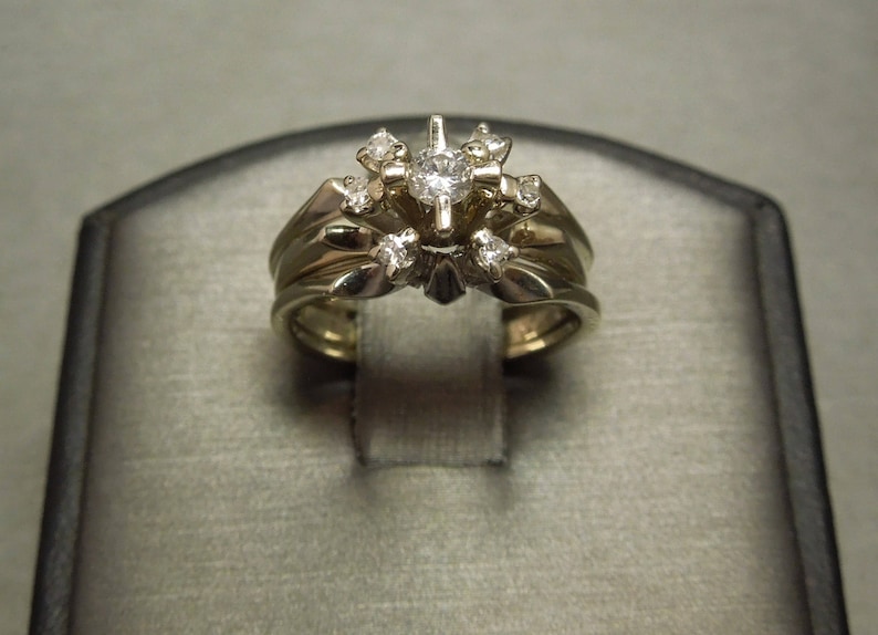 Vintage Estate C1960 18k White Gold Galactic Starburst 0 24tcw Vvs Diamond Engagement Ring Wedding Guard 2pc Set