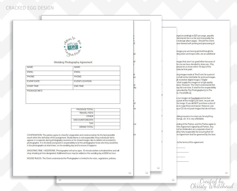 Wedding Photographer Contract Wedding Photography Client Bride Groom Agreement Word Template