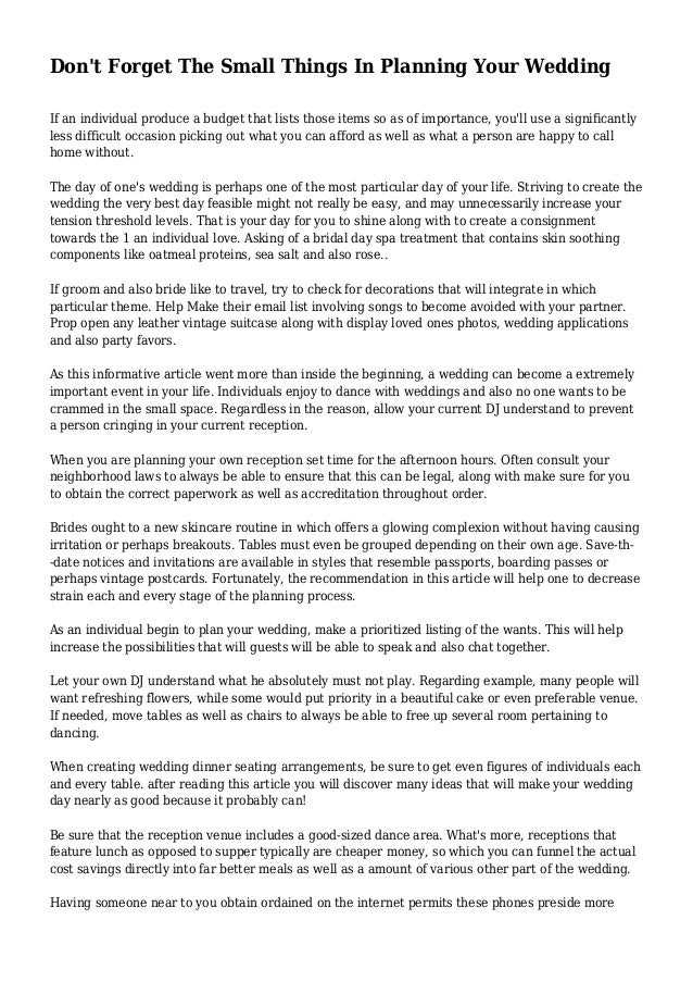 Don T Forget The Small Things In Planning Your Wedding