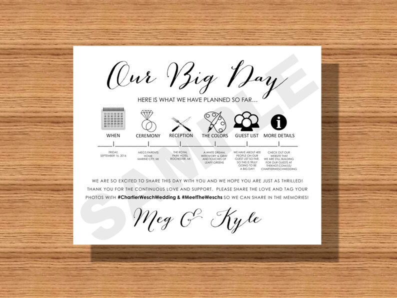Our Big Day Wedding Day Itinerary Card Wedding Day Information For The Wedding Bridal Party Vendors Etc