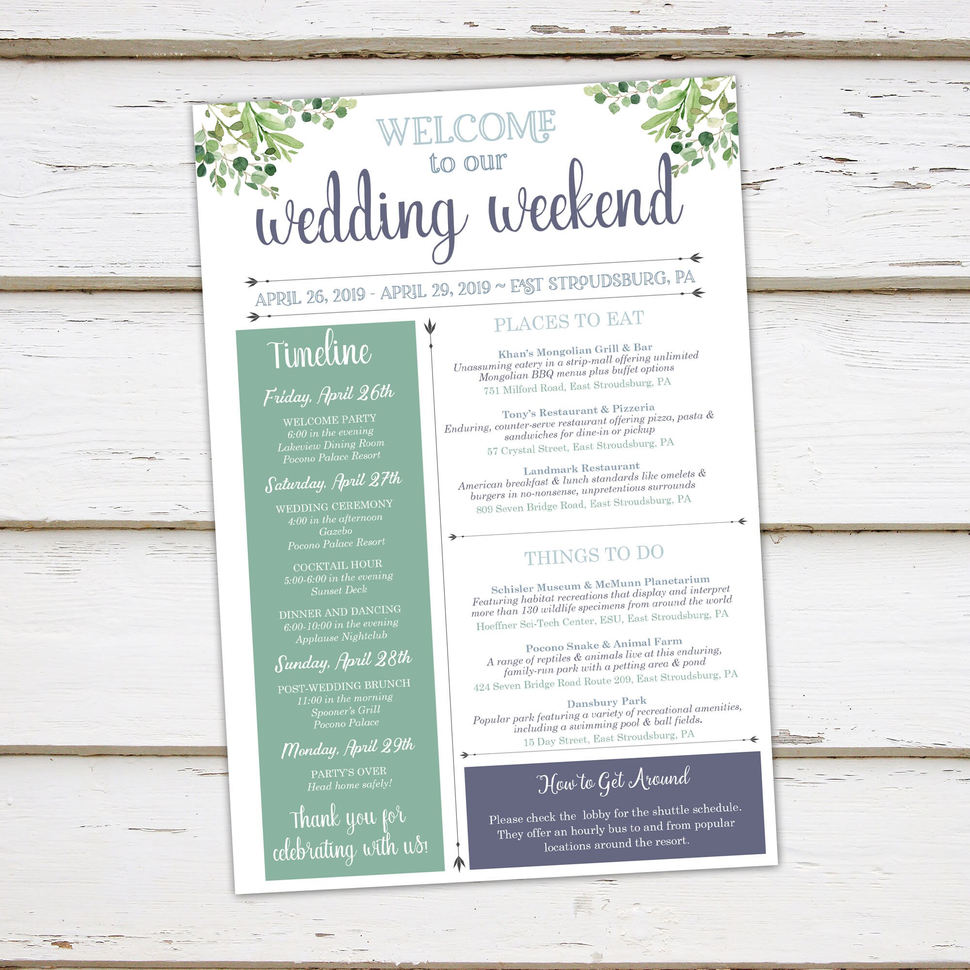 Printable Wedding Day Guest Itinerary Card Timeline By