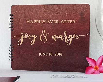 Wooden Wedding Guest Book Personalized 11 X8 5 Mahogany Stain Wood For Bride And Groom Vintage Alternative Anniversary Bridal Party Guest Album