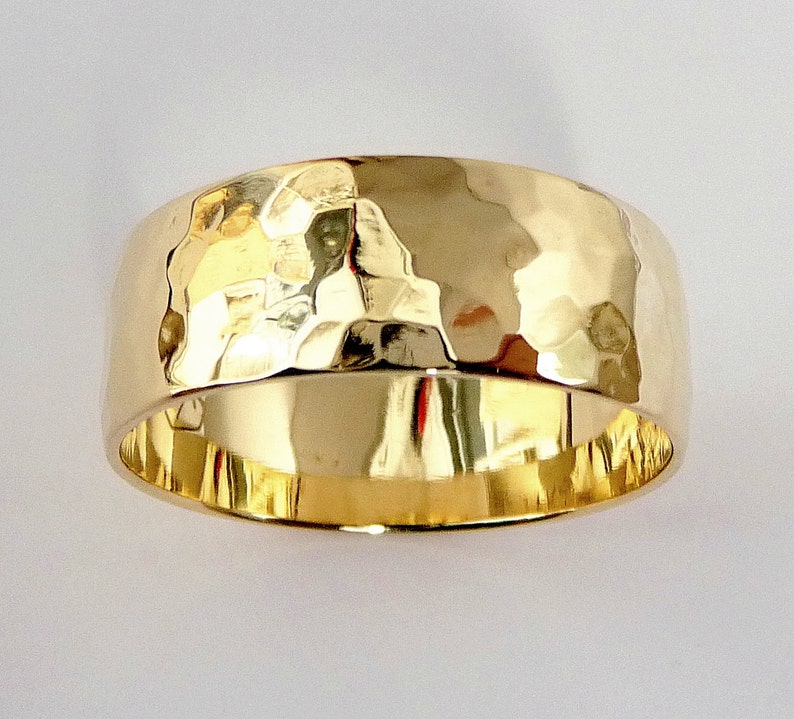 Mens Wedding Band Gold Wedding Ring Solid Gold Ring 8mm Wide Hammered Ring Men Women Ring