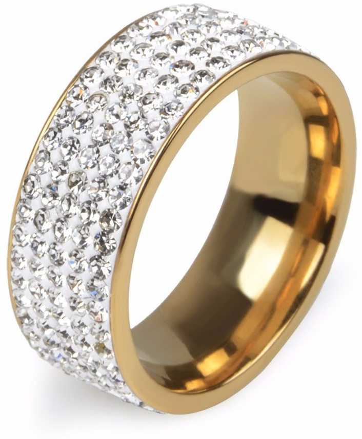 Daluci Crystal Ring Elegant Full Finger Love Wedding Engagement Men Women Gold Stainless Steel Gold Plated Ring