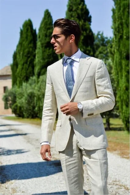 Us 71 99 20 Off Ivory White Linen Casual Men Suits New Design Summer Beach Wedding Suits For Men Groom Best Men Party Prom Suit 2 Pieces Blazer In