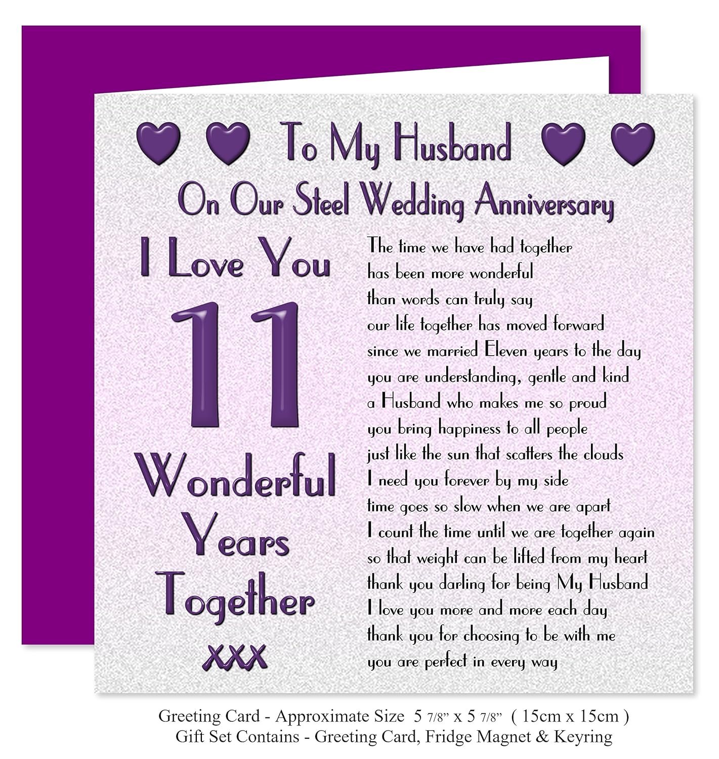 My Husband 11th Wedding Anniversary Gift Set Card Keyring Fridge Magnet Present On Our Steel Anniversary 11 Years Sentimental Verse I Love