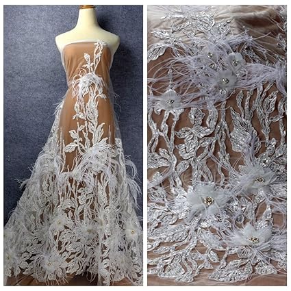 51 Off White Beige Heavy Big Leaves Beading Handmade 3d Flowers Feather Wedding Evening Dress Lace Fabric By Yard Off White