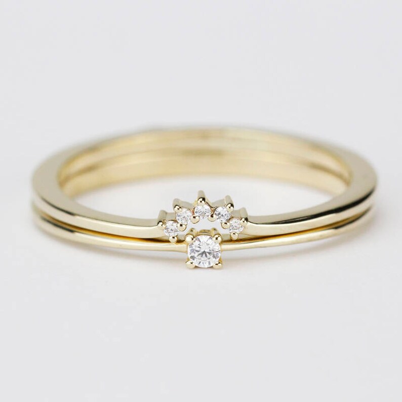 Diamond Engagement Ring Wedding Band Curved Solitaire Diamond Ring Wedding Ring Set Diamond Ring White Diamond Wedding Ring