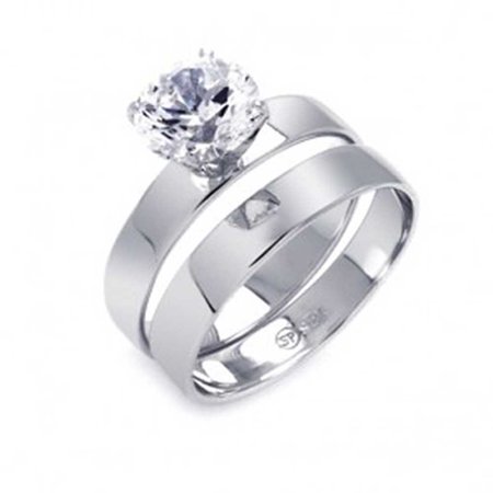 Simple 2ct Cubic Zirconia Solitaire Plain Flat Band Aaa Cz Engagement Wedding Ring Set For Women 925 Sterling Silver