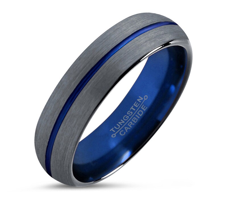 Mens Wedding Band Thin Blue Line Tungsten Ring Brushed Gray 6mm Wedding Ring Engagement Ring Promise Ring Rings For Men Rings Women