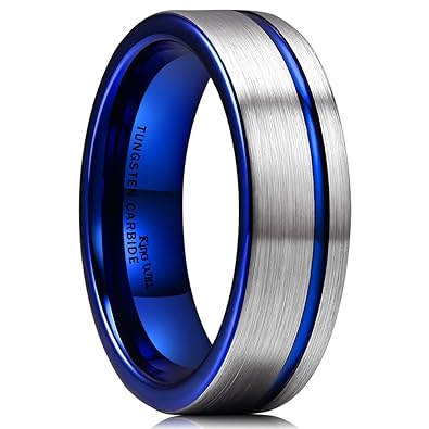 King Will Loop 7mm Thin Blue Line Mens Tungsten Carbide Wedding Band Ring Matte Finish Pipe Cut
