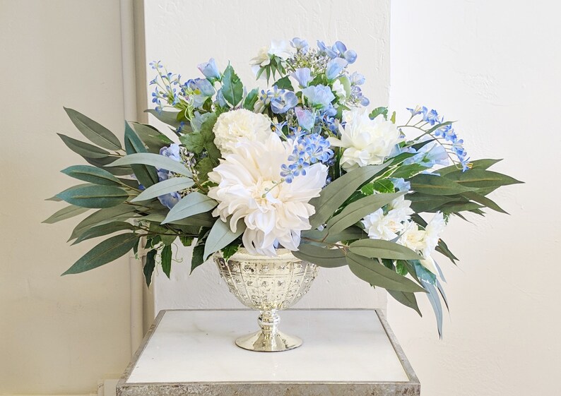 Details About Pale Blue Pink White Silk Flowers Centerpiece Spray Arrangement Wedding Floral