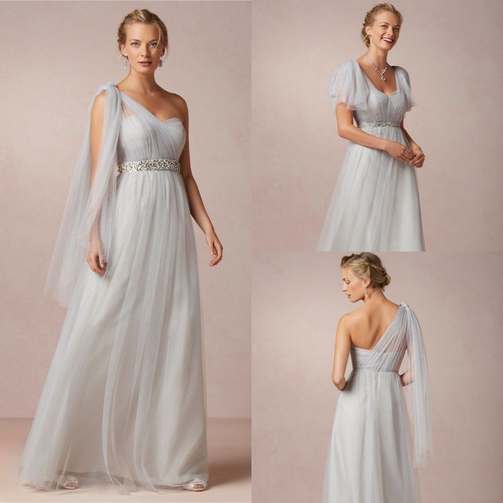 Bridesmaid Dresses Cheap 2019 Silver A Line Convertible Pleat Tulle Maid Honor Special Occasion Dresses For Wedding