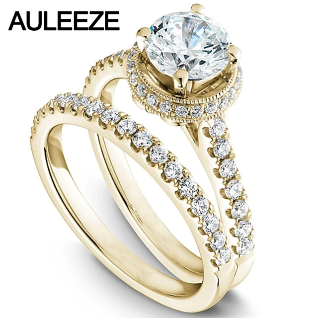 Us 495 9 10 Off Halo Putaran 1 Carat Moissanites Modern Bride Wedding Ring Set Solid 14 K 585 Kuning Emas Engagement Rings Untuk Wanita Halus