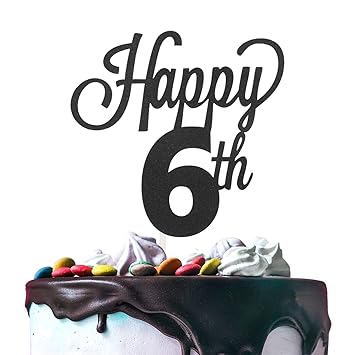 6th Happy Birthday Cake Topper Premium Double Sided Black Glitter Cardstock Paper Party Decoration
