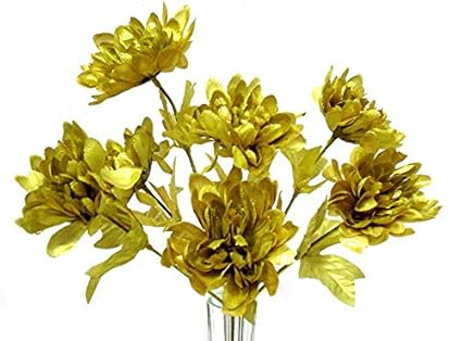 Amazon Com 5 Mums Gold Wedding Bridal Bouquet Silk Flowers