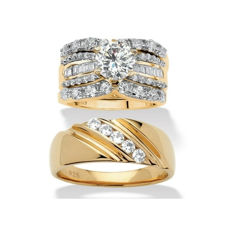 Round Cubic Zirconia 4 Piece His And Hers Wedding Ring Set 6 12 Tcw In 18k Gold Over Sterling Silver